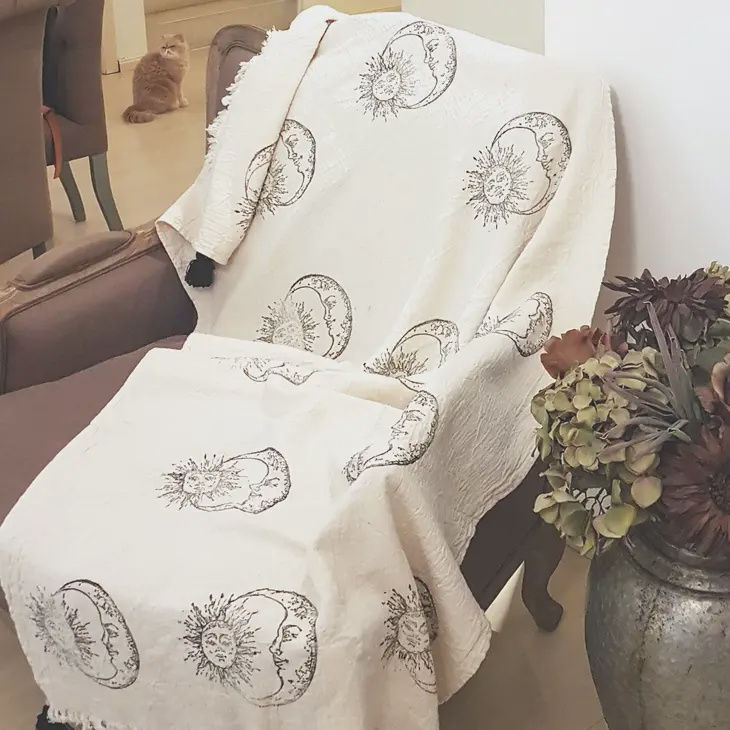 Black Snake & Gold Foil Moon Throw Blanket - Hand Loomed Organic Cotton & Dye